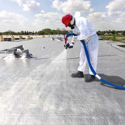 Shark Armor 2185 is a fast set, rapid cure, 100% solids, plural component aluminized polyurea spray applied lining for commercial and industrial roofing applications. This system has enhanced UV stability and remains flexible in cold temperatures. Shark Armor 2185 exhibits excellent abrasion, corrosion and above/below grade hydrostatic pressure resistance and can be applied in single or multiple pass applications from 10 mils to 50 mils without sag or runs. When applied, Shark Armor 2185 demonstrates exceptional adhesion to spray polyurethane foam, concrete, bitumen and asphaltic roofing felts, steel, wood and most substrates in extreme cold and warm climates.